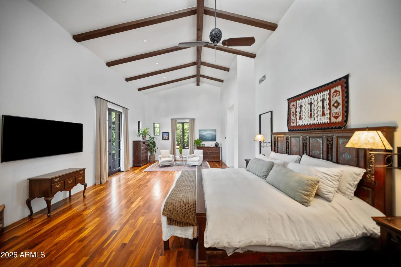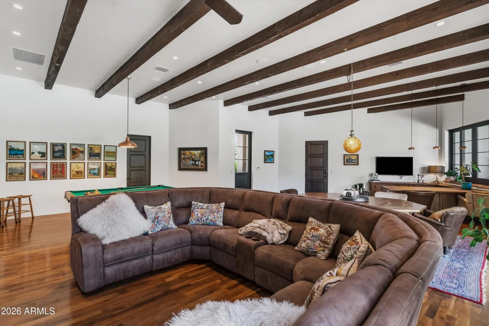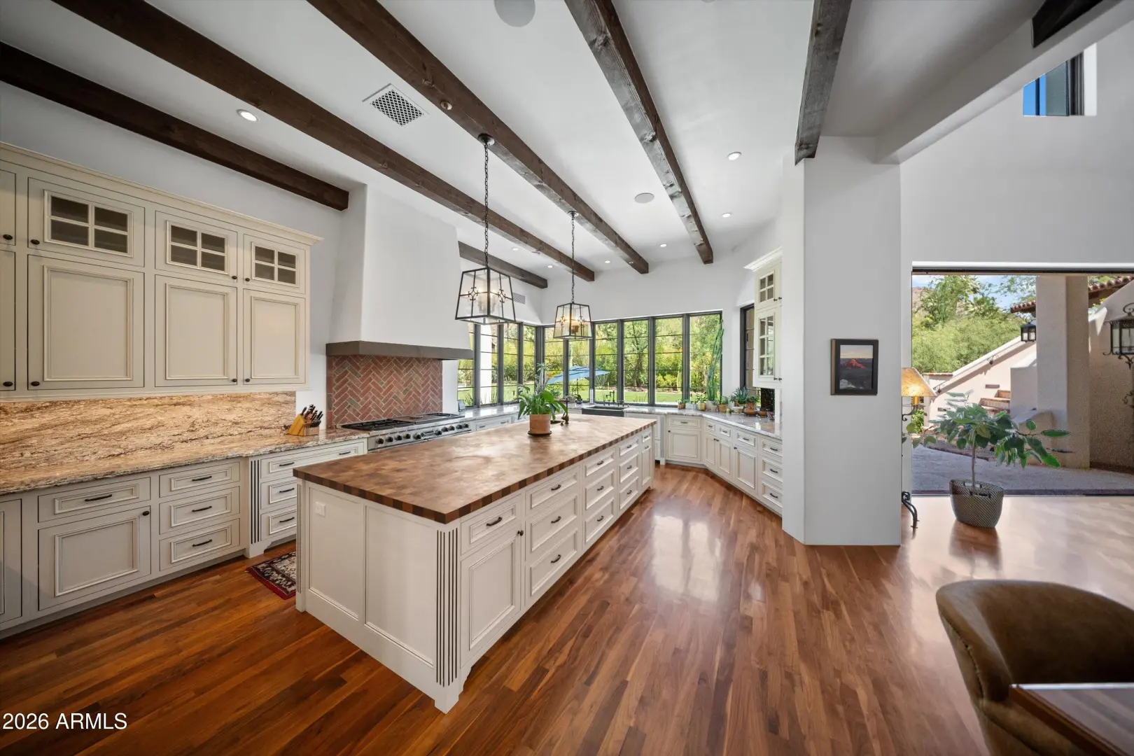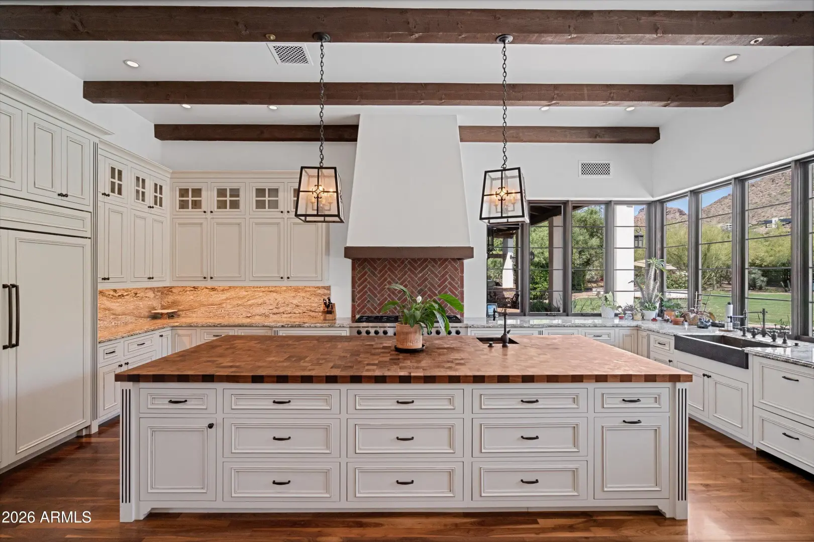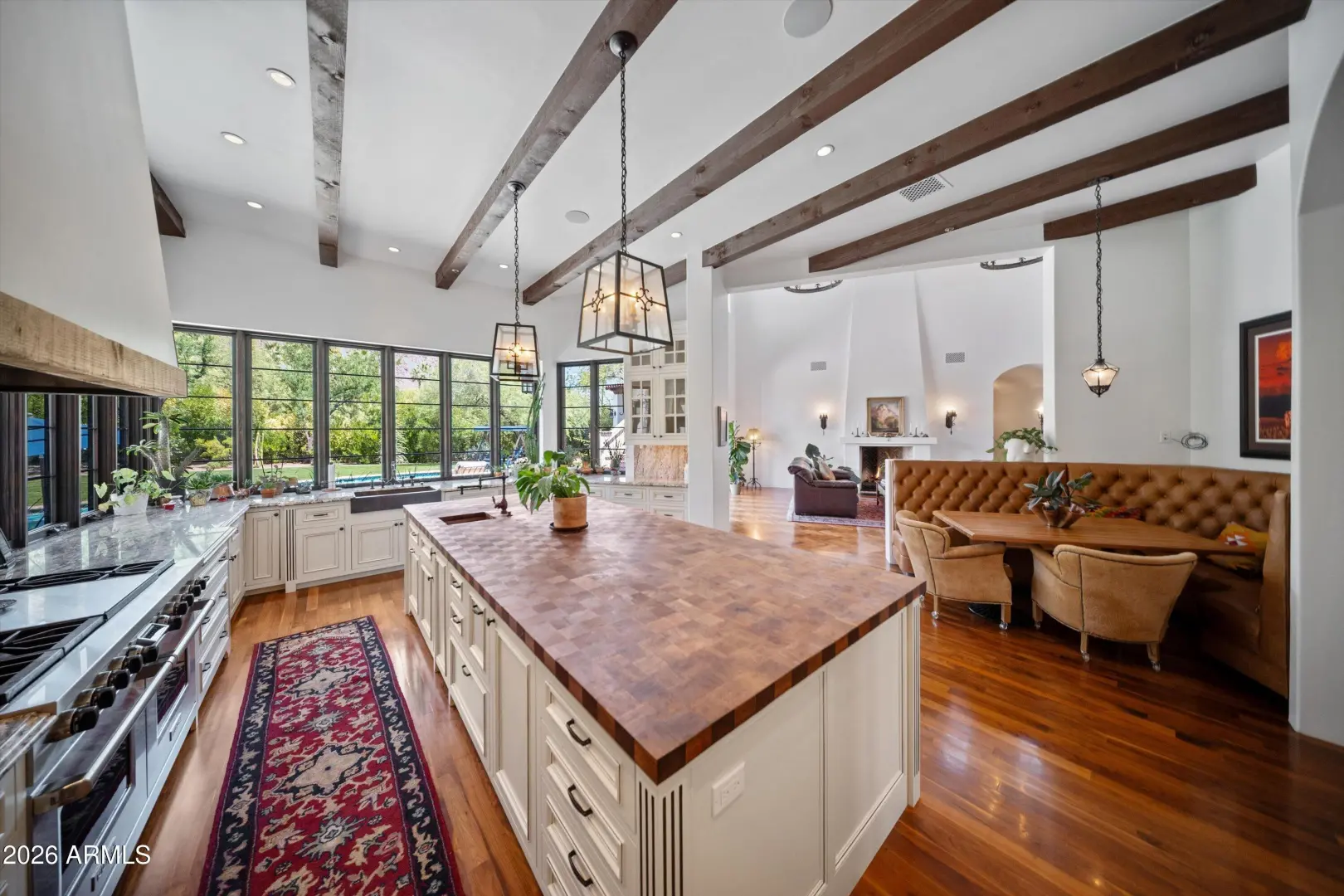 Set on over an acre at the base of Camelback Mountain, this Santa Barbara inspired estate is a rare expression of craftsmanship, scale, and design. Thoughtfully custom built with an emphasis on quality and detail, the home offers seamless indoor-outdoor living, expansive glass, and unobstructed mountain views that fill the interiors with natural light. Rich walnut flooring, custom millwork, and hand-crafted finishes define the living spaces, anchored by a chef's kitchen designed for elevated entertaining. The flexible floor plan includes multiple bedroom suites, a private guest retreat with separate living space, dedicated office and flex room with stunning views. Bathrooms feature artisan tile and refined natural stone, continuing the home's cohesive, high-end aesthetic.